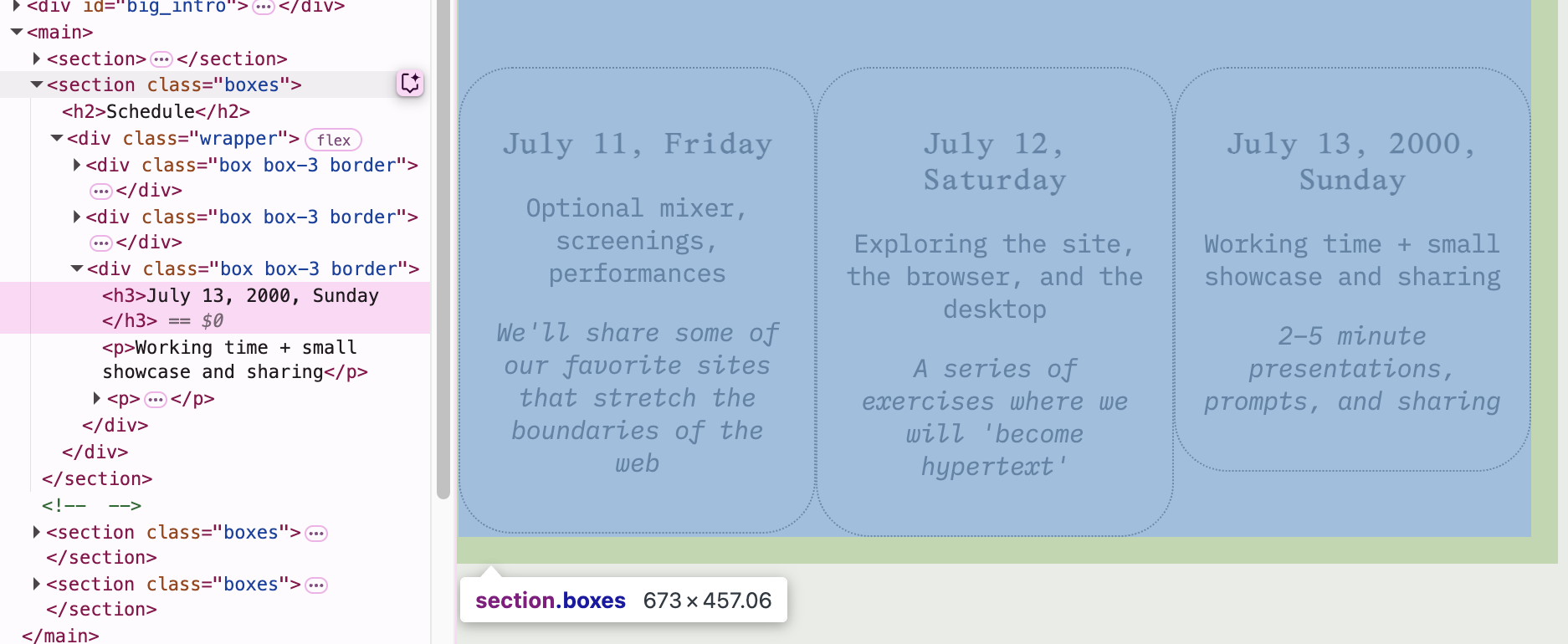 In this exercise, we'll play with the site as a material and the browser as an instrument by manipulating the elements and attributes of different webpages.